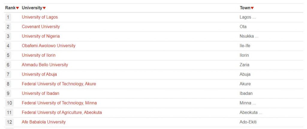 The University of Lagos has been ranked 1st in Nigeria and 8th in Africa, by uniRank University Ranking™, the leading international higher education directory and search engine featuring reviews and rankings of over 13,600 officially recognized Universities and Colleges in 200 countries.