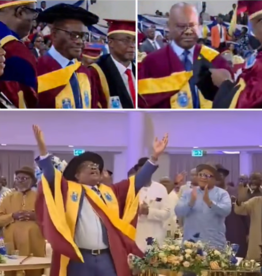 A video of him treating his guests to his dance moves after the conferment is making the rounds on social media.