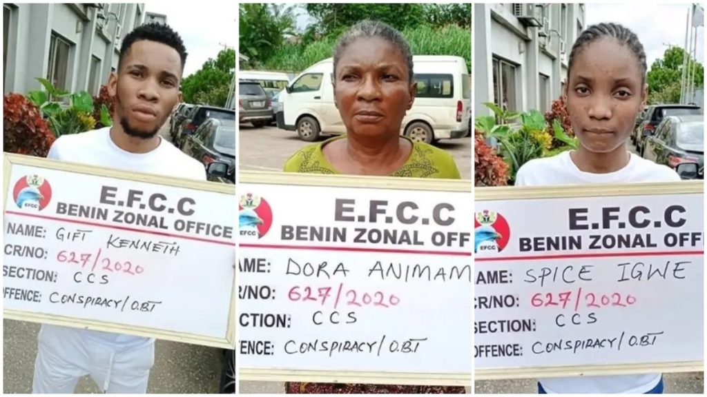 A 22-year old Computer Science Undergraduate of the University of Port Harcourt, Kenneth Gift, his girl friend, Dandy Spice and mother, Dorah Aninah have been arrested for engaging in internet fraud in Agbor, Delta State.
