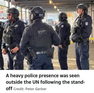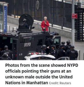 THE United Nations headquarters was placed on lockdown after a man armed with a shotgun was pacing outside the facility sparking a massive police response.