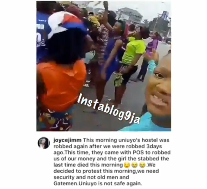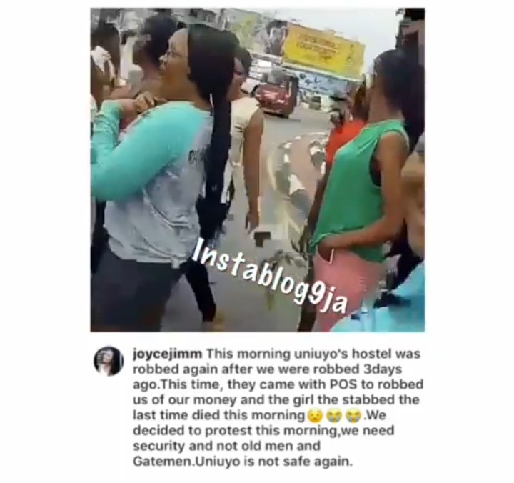 UNIUYO female students protest as robbers attack them for the 2nd time in 3 days.