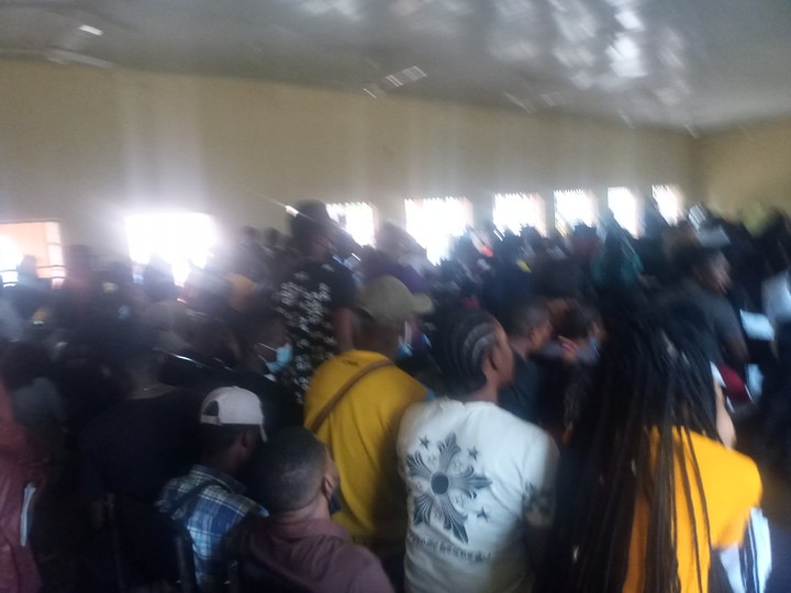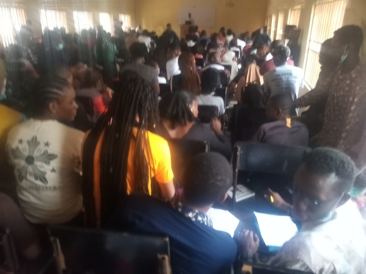 These are over 400 students of uniabuja receiving lecture in a small hall.
