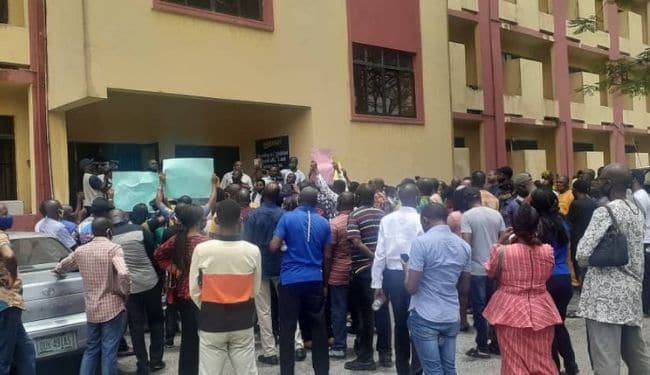 University Of Calabar ASUU Members Protest Over Backlog Of Financial Entitlement