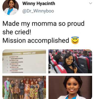 An elated Winifred took to Twitter on Monday, January 18, to share how she made her mother proud with the feat.
