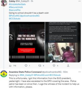 Reacting to the incident, the Anambra state police command via its Twitter handle said ;
