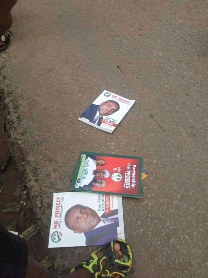 Newspapers, documents bearing ‘Mr Project’, Azubogu’s pet name, were among other documents which littered the road.