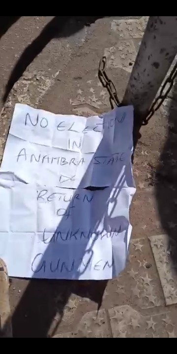 It Reads: No Election In Anambra State, The Return Of Unknown Gunmen.