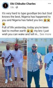 “It’s very hard to type goodbye bro but God knows the best, Nigeria has happened to you and Nigeria has failed you bro,” Obi wrote.