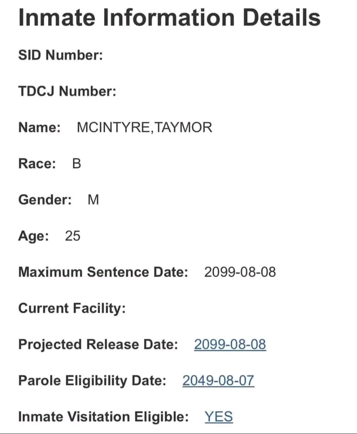 According to a latest development, Tay-K’s projected release date is August 8, 2099, with his parole eligibility set for August 8, 2049.
