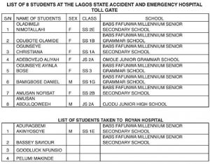 In a statement on Thursday, Chairman of Ojodu Local Council Development Area, Odunmbaku ‘Segun, said all the injured students are in stable condition.