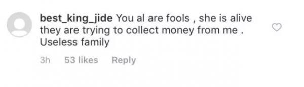 “You all are fools, she is alive; they are trying to collect money from me. Useless family.”