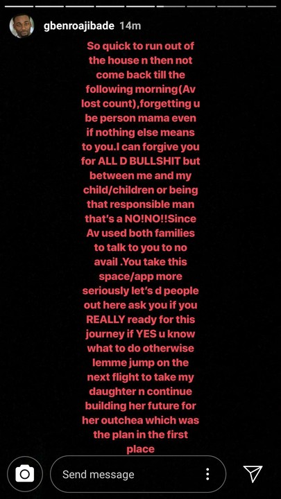 He also says if she’s still ready for this journey, that she knows what to do, else he will take to next flight to Nigeria to pick their daughter. See his posts below.