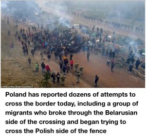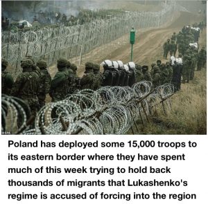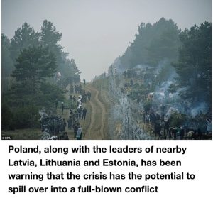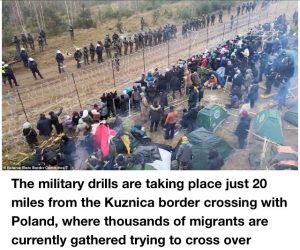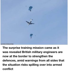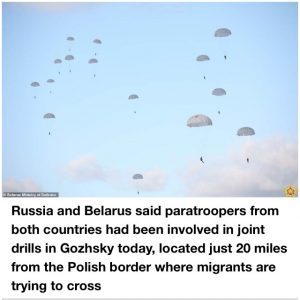 It comes after Russia and Belarus held snap paratrooper drills just 20 miles from a border crossing where thousands of migrants are gathered, saying it was to ‘test the readiness’ of their troops, at the same time as two Russian bombers flew close to the UK – with RAF Typhoons scrambled to escort them.