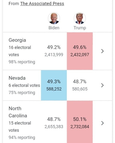 As time progresses, LIB will give you more news from some of the final four battleground states: Georgia, Pennsylvania, North Carolina and Nevada.