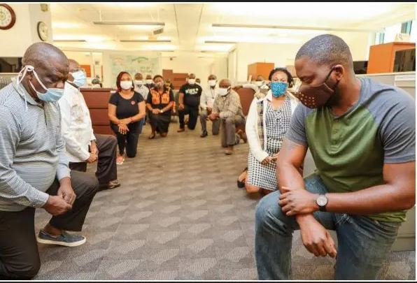 The United States Embassy staff in Abuja, Nigeria, went on one knee, as they joined the justice for George Floyd protest.