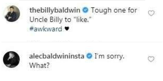 Billy first wrote, “Tough one for Uncle Billy to ‘like.’ #awkward ♥?.” While Ireland’s dad, he commented, “I’m sorry. What?”