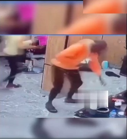 CCTV captures a sad moment when two thugs busted into a barbing saloon and assaulted a young man in the saloon and stole away valuables from the saloon.
