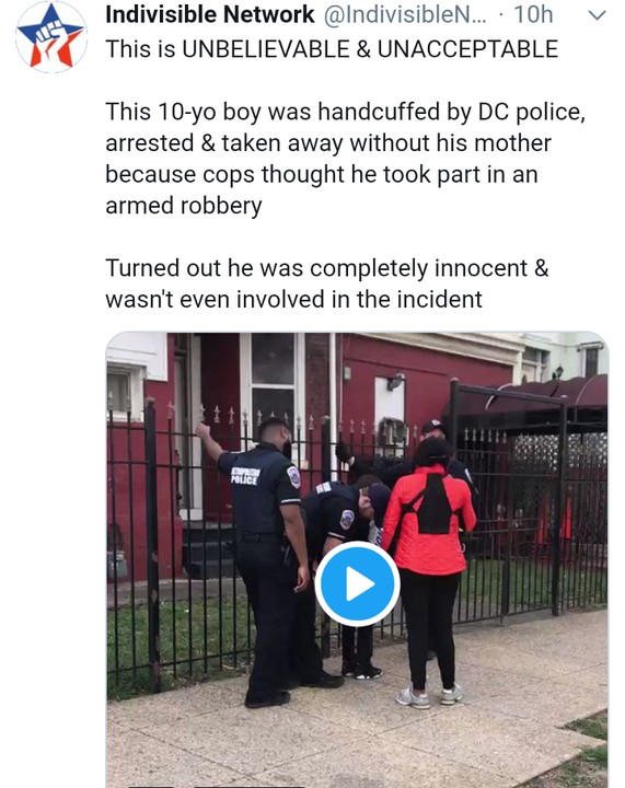 Twitter user shares a video of DC United Police arresting and molesting a 10 year old black american boy, who was wrongly accused of robbery operation.