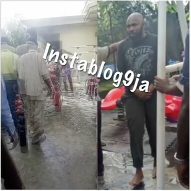 However, before he could salvage the situation, the fire had already entered the house and destroyed some of his properties. Neighbors later trooped out with their fire extinguishers to help him put out the fire.
