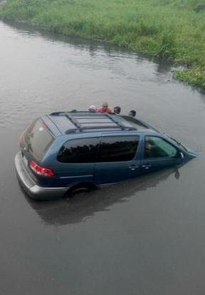 Vehicle skids off bridge, falls into Lagoon in Lagos (photo)