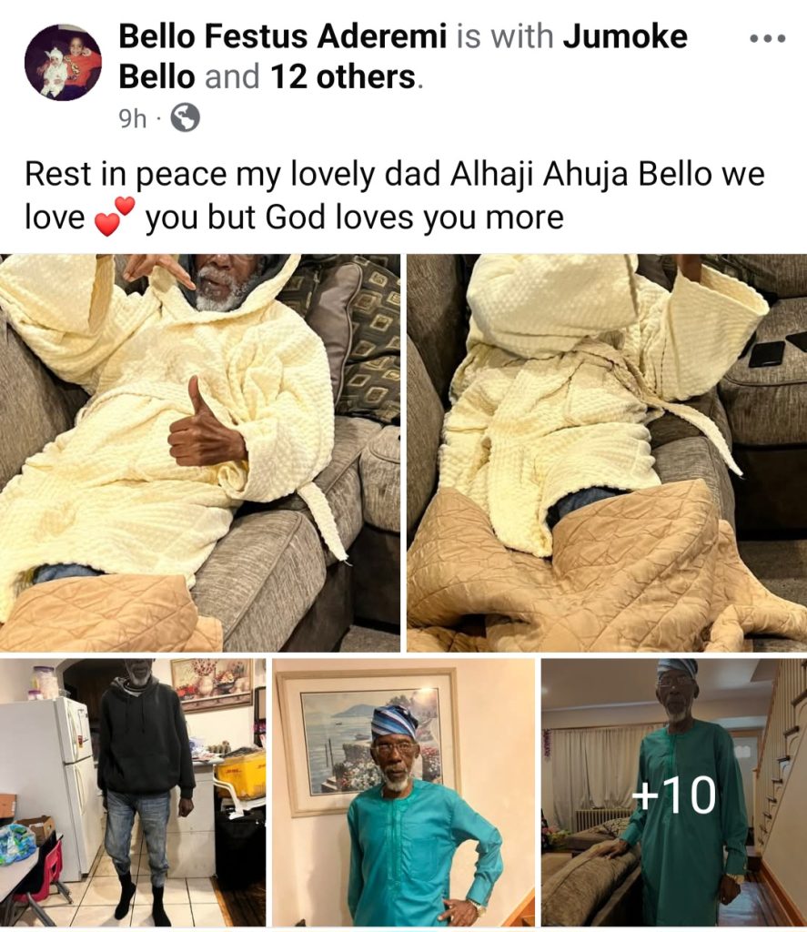 His death was confirmed by his child Bello Festus Aderemi in a Facebook post shared on Monday, August 25.