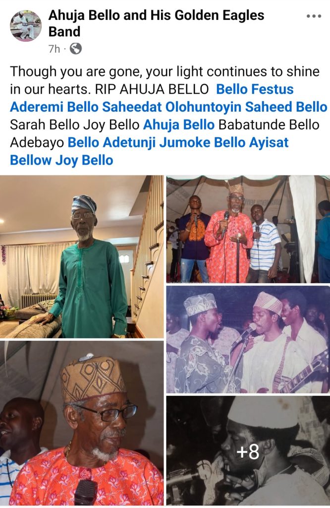 His band page, with the username Ahuja Bello and His Golden Eagles Band, also confirmed the news, saying, “Though you are gone, your light continues to shine in our hearts. RIP Ahuja Bello.”