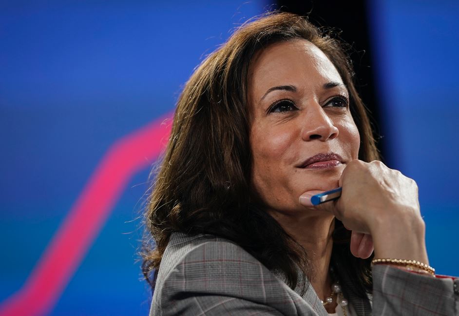 “I’m here today because of the women who came before me. And to the woman most responsible for my presence here today – my mother, Shyamala Gopalan Harris, who is always in our hearts,” Kamala Harris says as snapshots of her family and her campaign flit across the screen.