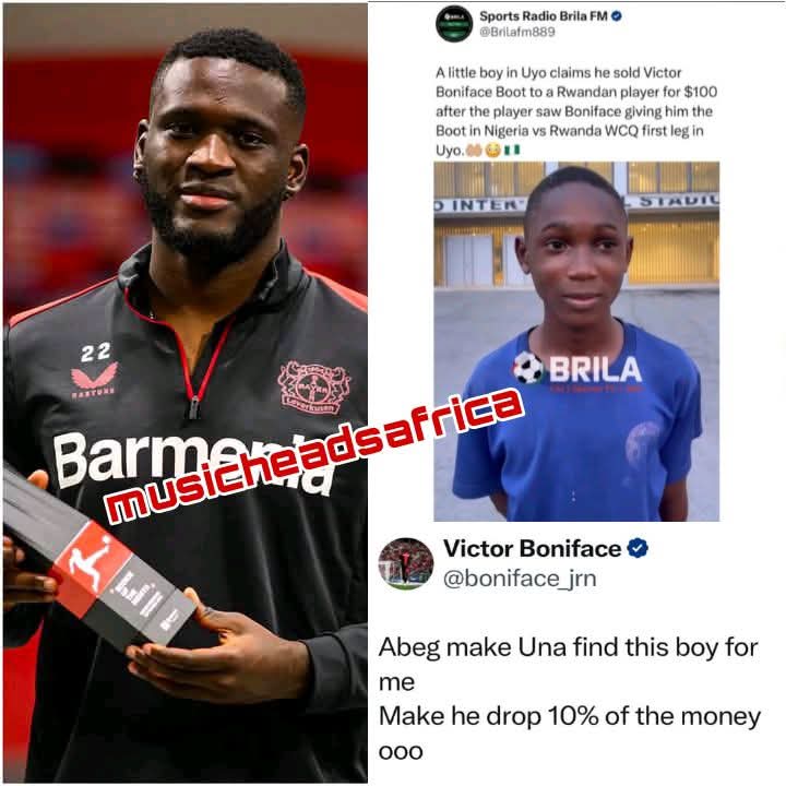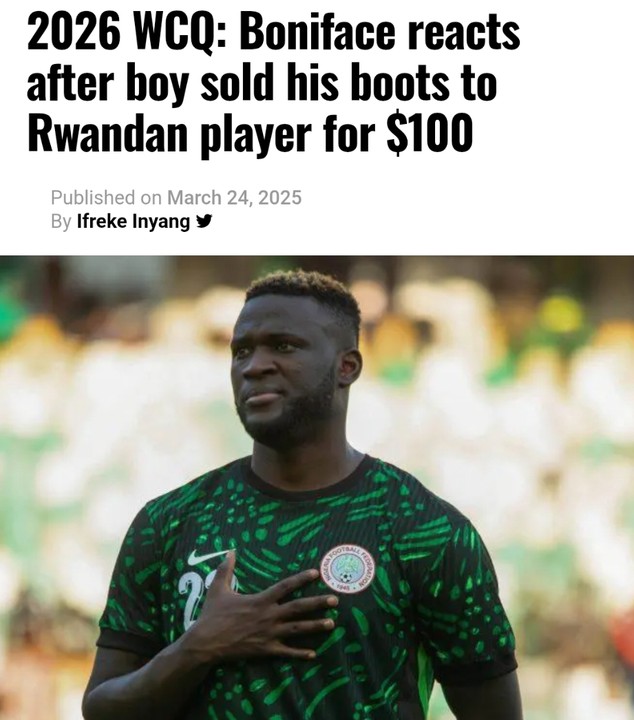Popular footballer, Victor Boniface reacts as a 15-year-old boy he gave his boots, after the Nigeria vs Rwanda match, sells them for $100.