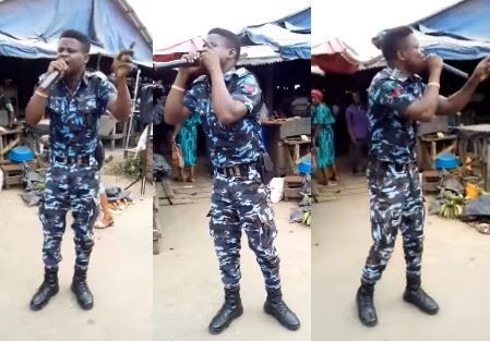 A video has surfaced online showing the moment a police officer was spotted with his uniform preaching the word of God in the market in Anambra state.