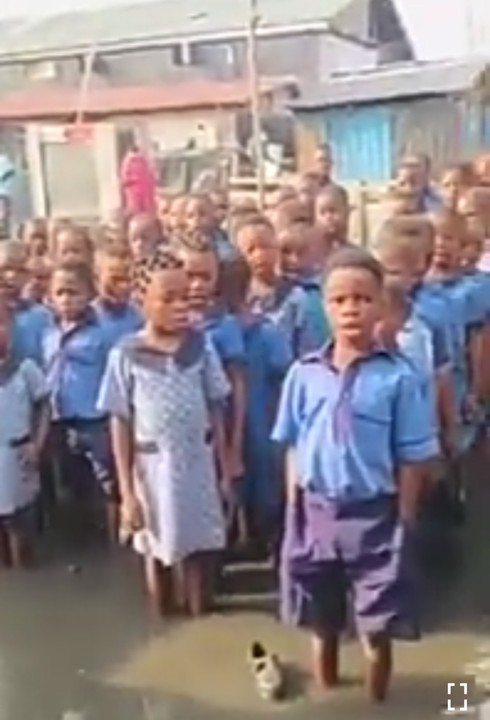Pupils Singing National Anthem In A Flooded School In Nigeria