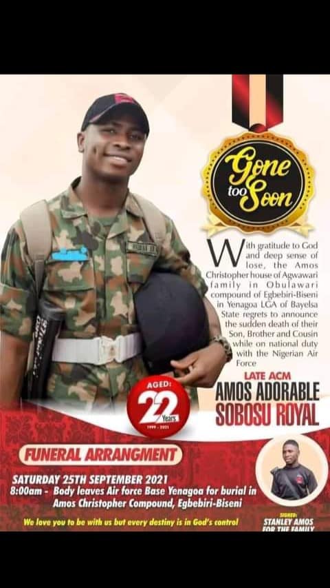 A 22-year-old Nigerian soldier identified as Amos Adorable Sobosu Royal has been killed while on national duty with the Nigerian Army.