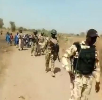 Following the worsening insecurity in the nation and the incessant abduction of school students by bandits, a troop of soldiers were filmed accompanying children to school in North-Eastern Nigeria.