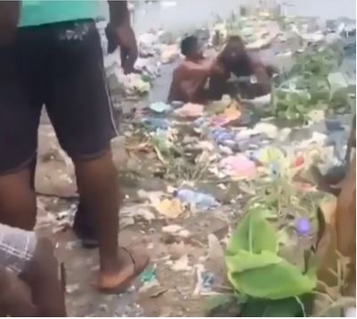 The video which went viral after being shared on social media, captured the moment the two unidentified Nigerian women fought while inside in a dirty pond.