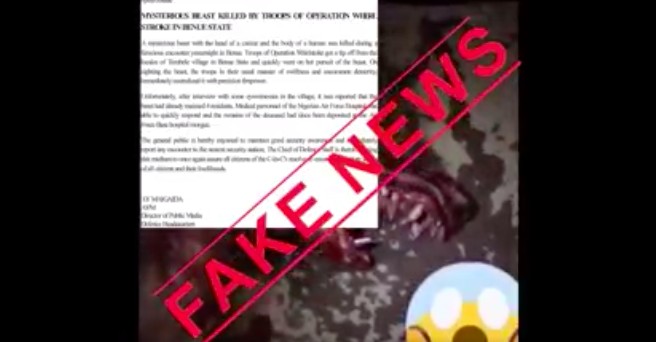 The Nigerian Army has debunked a video of a beast reportedly killed in Benue State by troops.