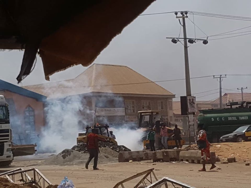 Angered by the action of the demolition officers, the aggrieved traders set the temporary office of the task force on fire and also barricaded parts of the road.