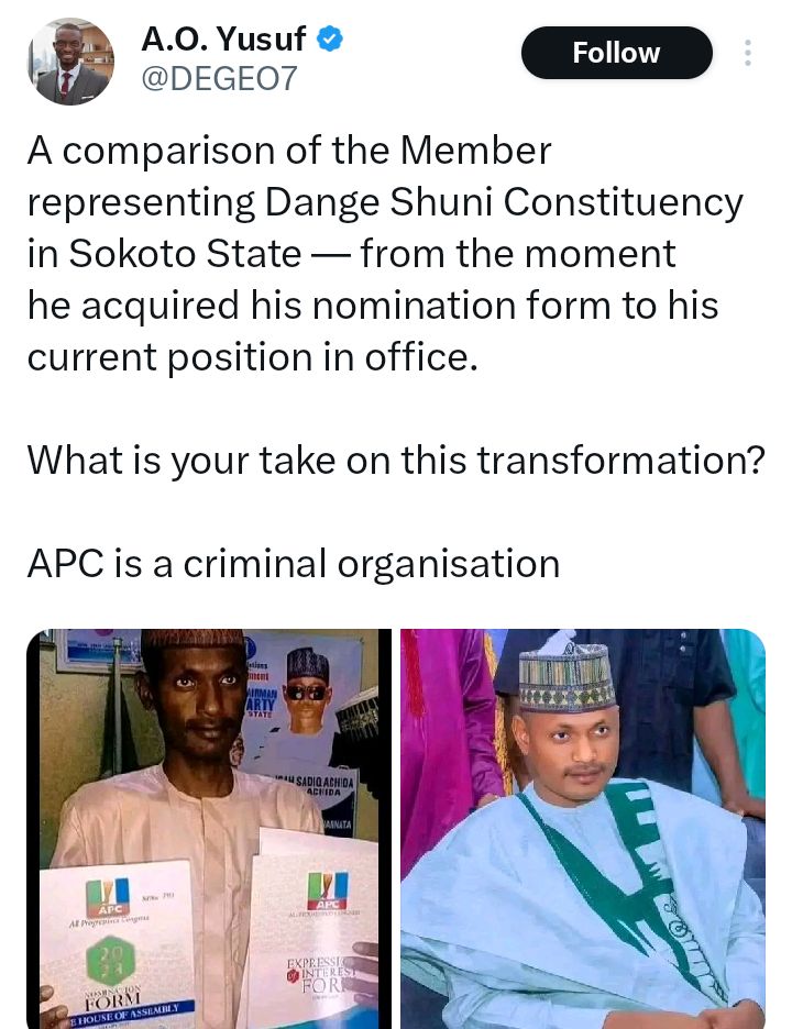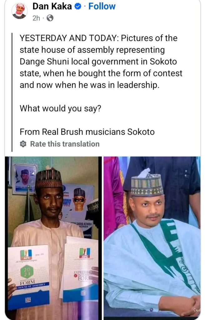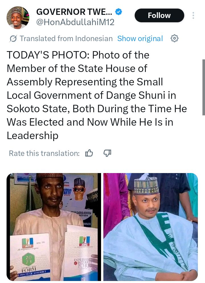 A member of the Sokoto State House of Assembly representing Dange Shuni Local Government, Hon. Surajo Muhammad Shuni, has sparked reactions with his remarkable transformation three years after he won election.