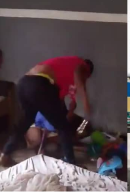 A Nigerian police officer has been caught on camera assaulting his wife while their children watched in tears, pleading with him to stop.
