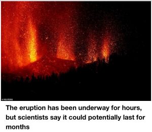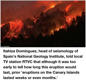 Itahiza Dominguez, head of seismology of Spain’s National Geology Institute, told local TV station RTVC that although it was too early to tell how long this eruption would last, prior ‘eruptions on the Canary Islands lasted weeks or even months.’