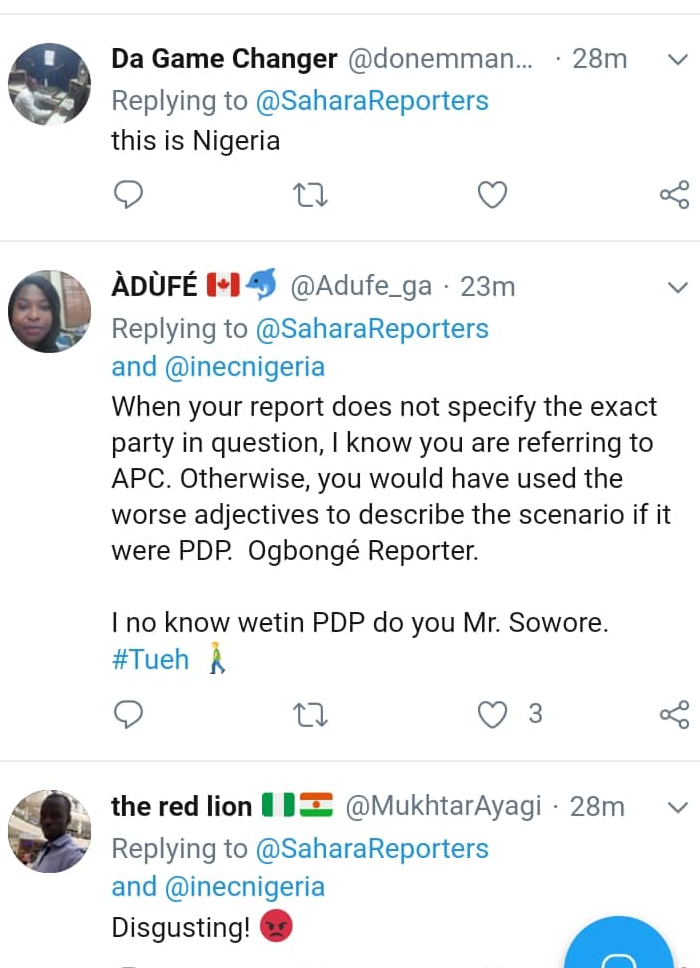 A video posted on Twitter by @UmarG_ and analysed by SaharaReporters showed a party agent in Kano holding on to what seemed to be numerous voter cards, which he gave out one after the other, while two other persons seemed to act as assistant.