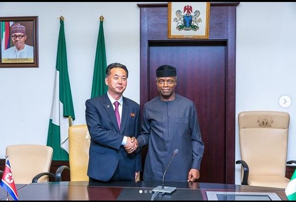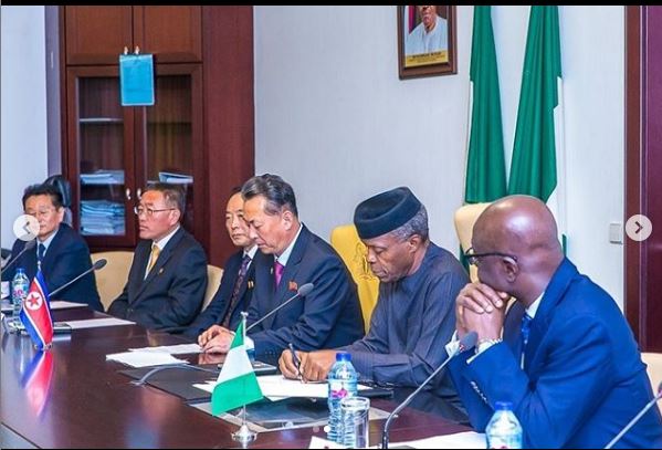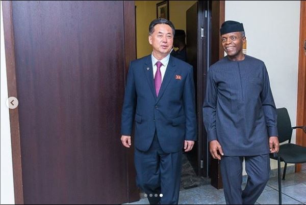 Earlier today, The Vice President of Nigeria, Prof. Yemi Osinbajo received the Vice Premier of the Cabinet of the Democratic People’s Republic of Korea, Mr. Ryong Nam at the State House