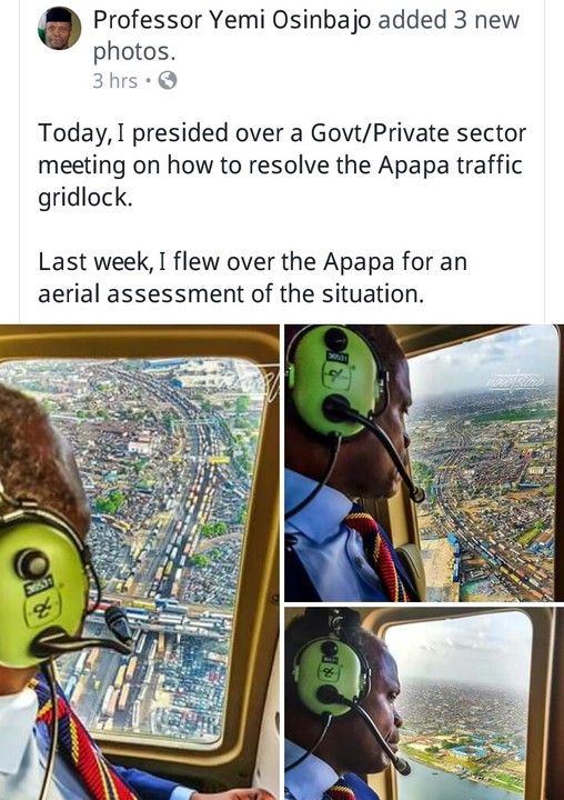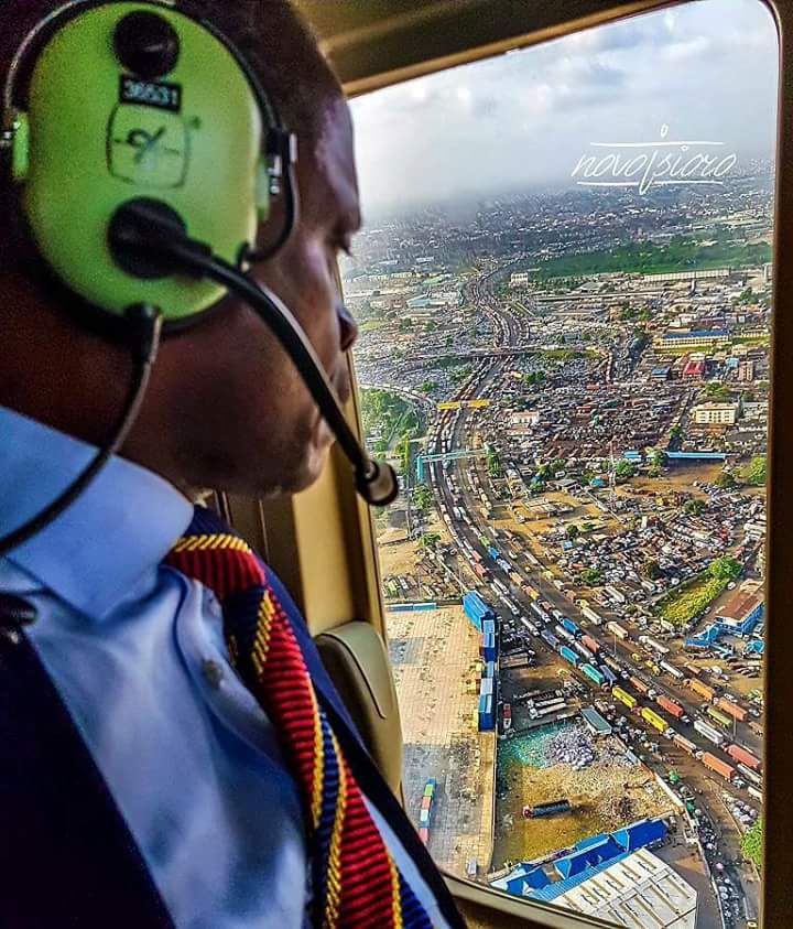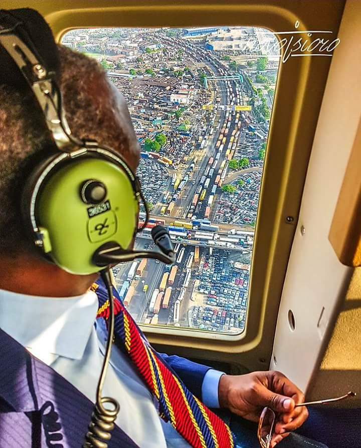 Below are pictures of VP Yemi Osinbajo viewing Apapa-Oshodi expressway from an helicopter.