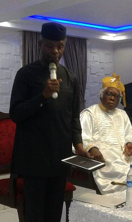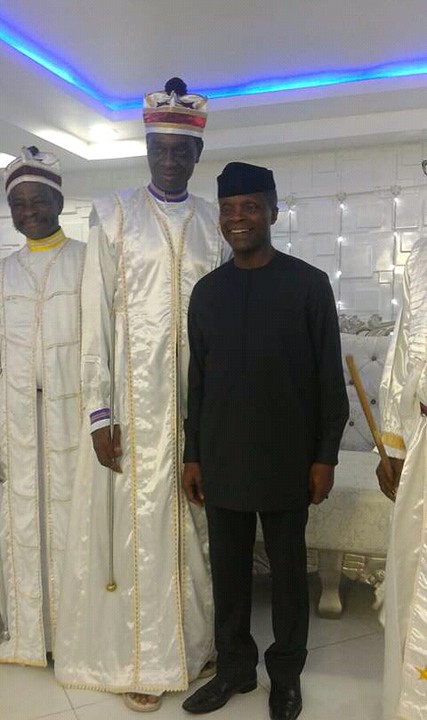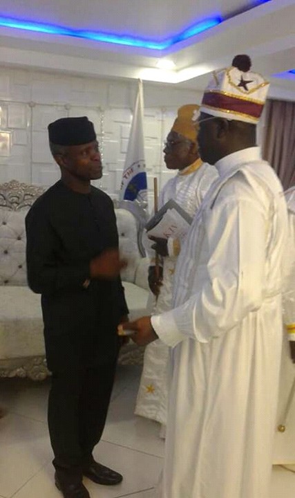 The Vice President of the Federal Republic of Nigeria His Excellency, Prof. Yemi Osibanjo paid a courtesy visit the prelate of the Main stream of cherubim and seraphim churches His Eminence, Baba Aladura David Dabaye L. Bob-Manuel of The Eternal Sacred Order Of The Cherumim and Seraphim (ESOCS church) yesterday evening.