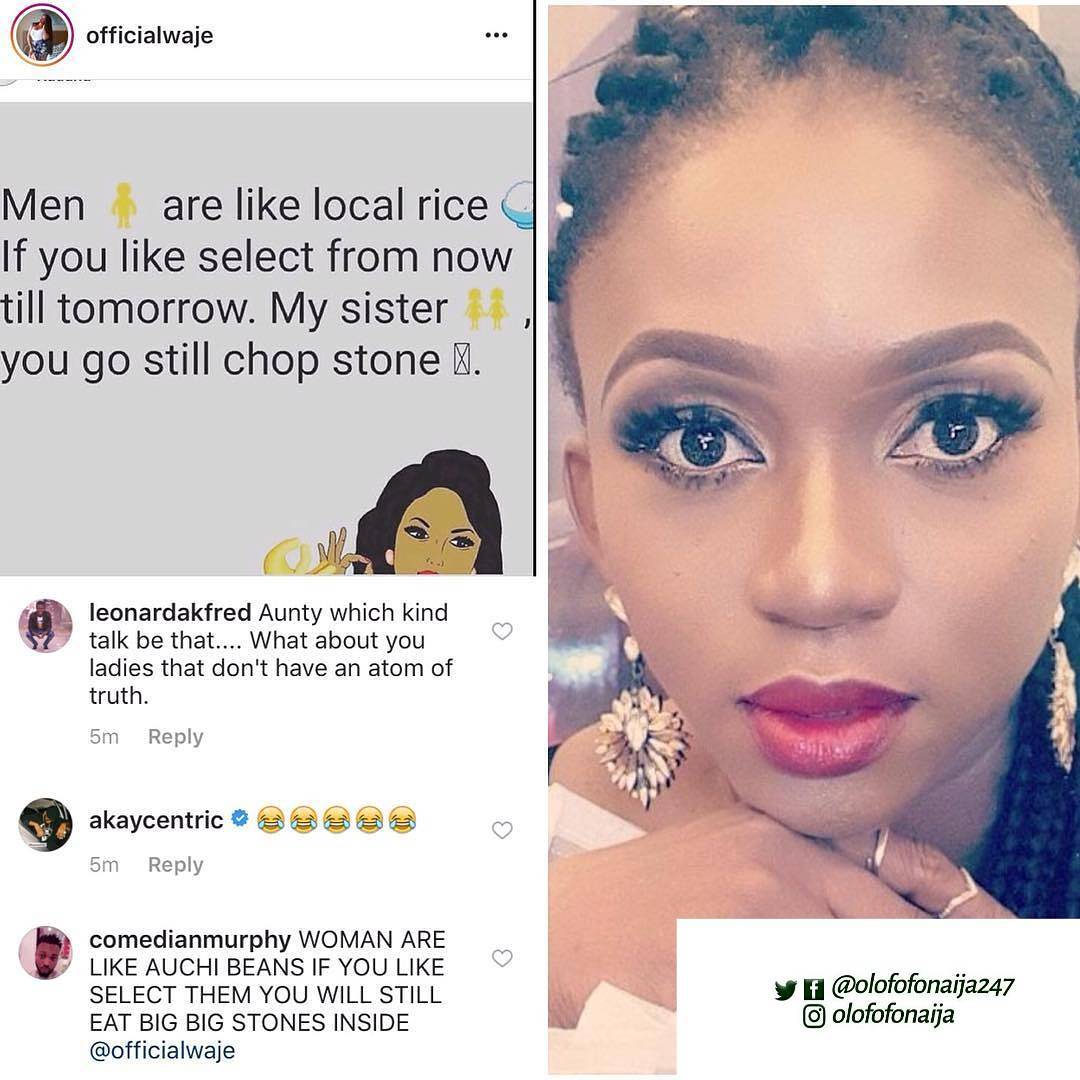 The single mum barely weeks ago confessed that dating has been difficult for her due to various reasons and it seems she is using this twisted advice on her page to help buttress her point. Tho the words feel like sound advice to many, some of her male fans were not too pleased with the analogy with led one of them to compare Nigerian ladies to Auchi beans, which is also notorious for its hefty stones.