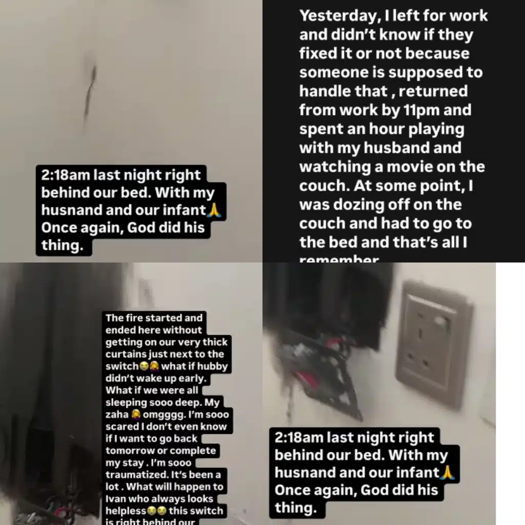 “The fire started and ended here without getting on every thick curtains just next to the switch. What if hubby didn’t wake uo early?. What if we were all sleeping do deep?”, She added.