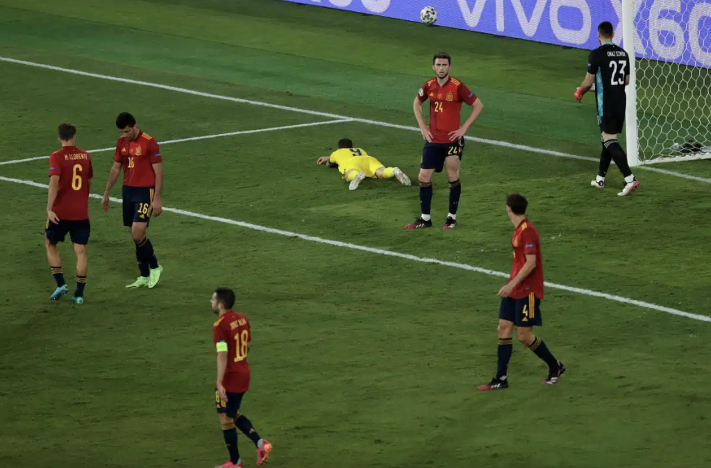 The Spaniards outclassed Sweden in possession and Alvaro Morata fired a great chance just wide, but it was the Swedes that came closest to scoring as Alexander Isak’s shot was deflected onto a post by Marcos Llorente just before halftime.