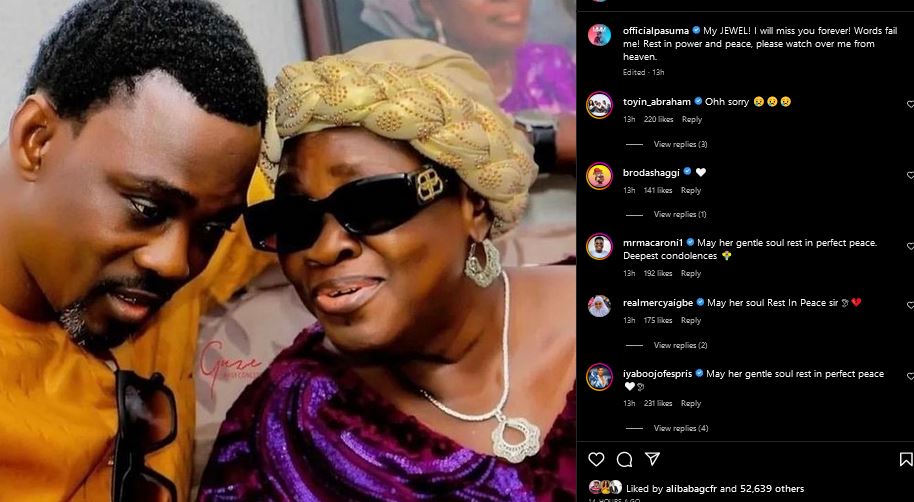 Fuji Icon and actor, Wasiu Alabi Odetola, better known as Pasuma, has lost his beloved mother.
