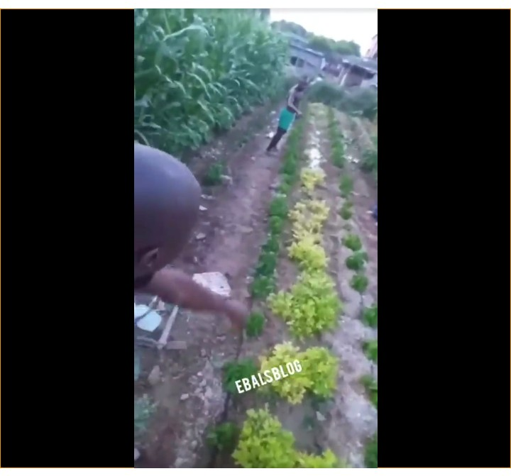 Nigerian man and his brother shows off their farm in Italy, according to him he said here is our garden in Italy where we cultivate maize, okro , and even pepper.