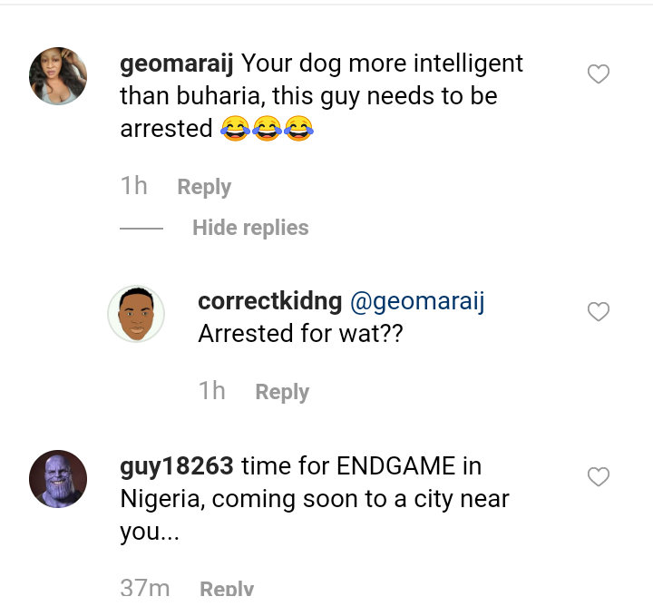 He went on to show his brother’s dog, he said this is my brother dog the dog that is “more intelligent than Buhari”.