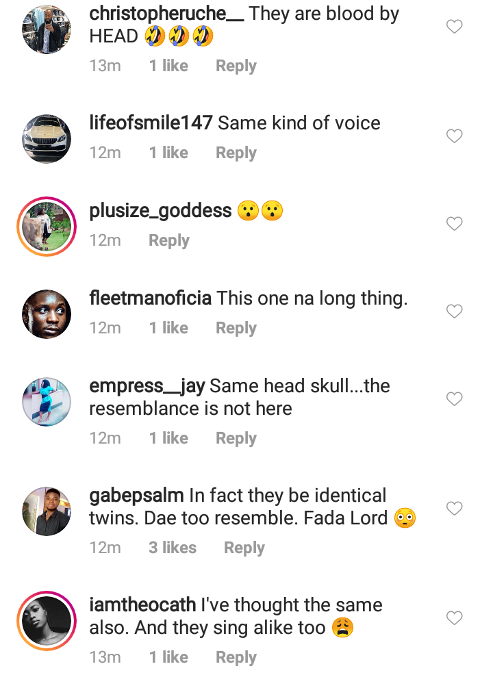 According to popular entertainer Tunde Ednut who posted resemblance photos of these two great singers, 2face and Joel Amado who look alike and sing alike.