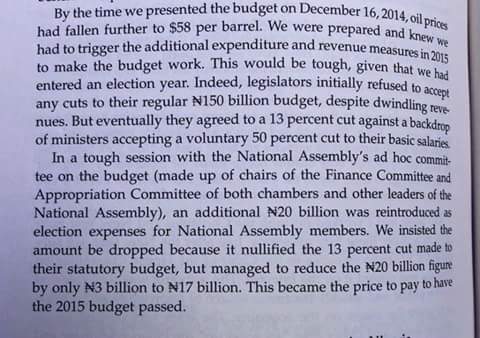 We paid NASS N17b as “election expenses” for its members, in order to have 2015 Budget passed.